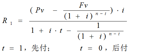 上述表达式与多数金融计算器是统一的,与微软的 Excel 中财务计算公式使用的表达式方式也是一样的。因此可以用这些运算工具来验证本文论述的科学性和正确性。 租金的计算公式: